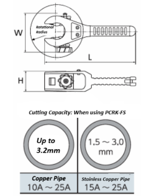 Zdolność cięcia (przy użyciu PCRK-FS): Rura stalowa 10A do 25A: do 3,2 mm