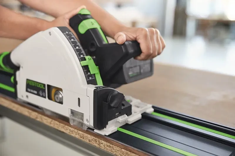 Prowadzenie bez luzu – elementy regulacyjne zagłębiarek można łatwo dopasować do szyny prowadzącej bez użycia narzędzi.
